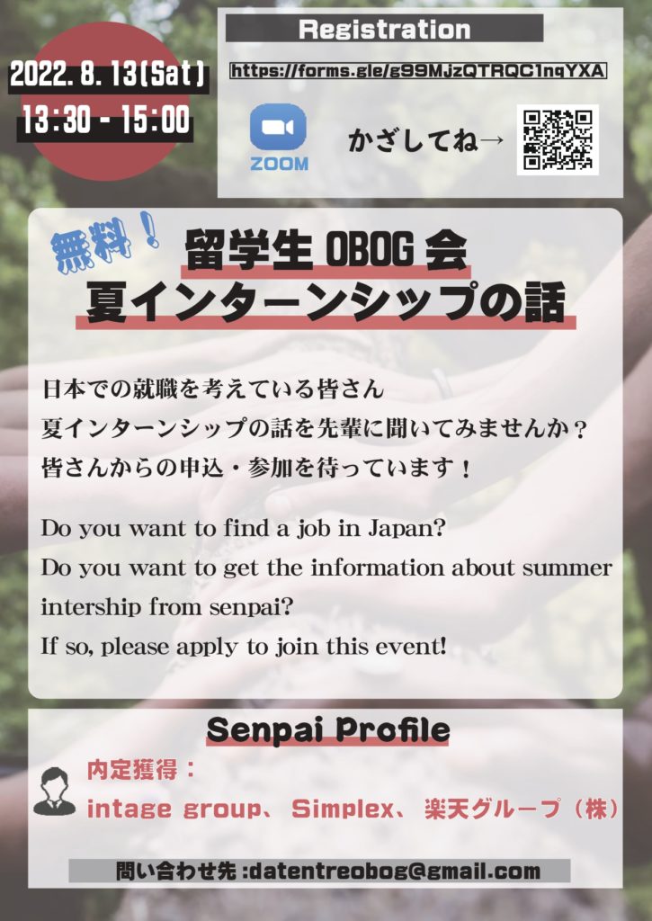 夏インターンシップはどうやって申し込むか?何社ぐらいの夏インターンシップに参加すればいいのか?といろいろな疑問を持っている方が多いかと思いますが、今回のOBOGで先輩にこんな疑問を聞いてみませんか?